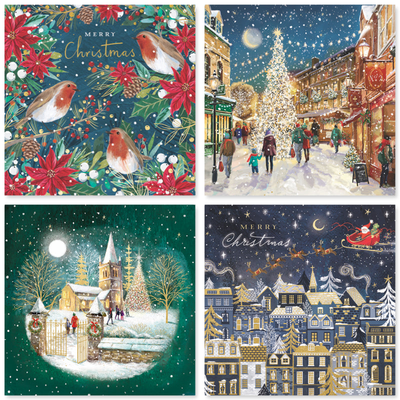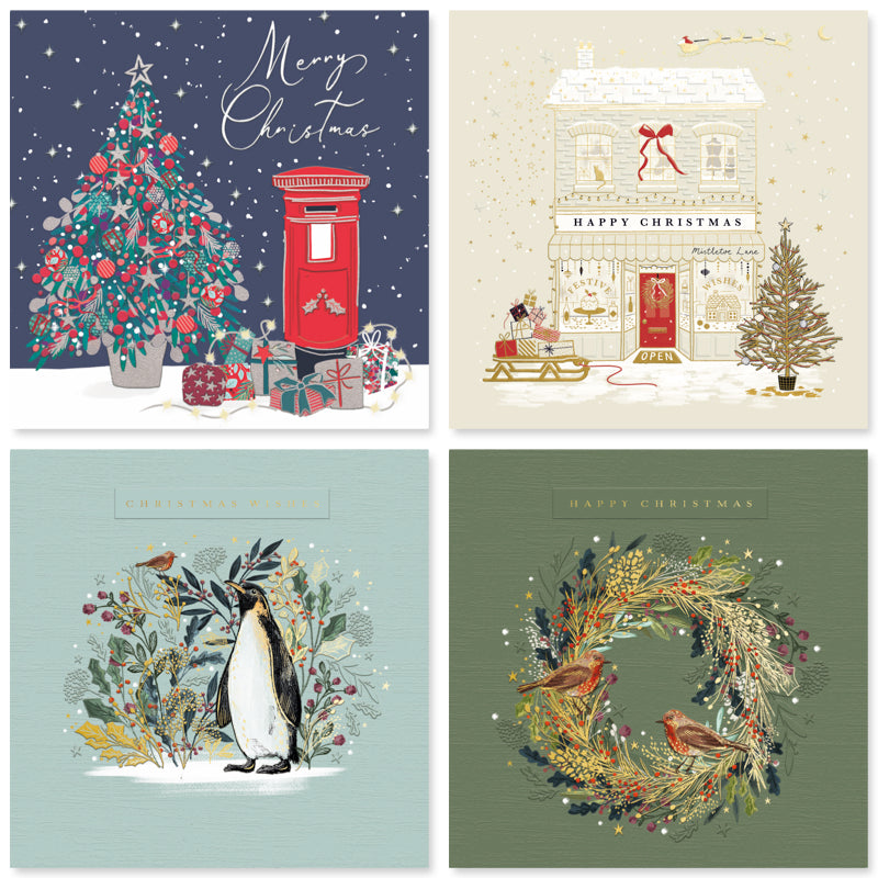 LUXURY CARDS: Pack of 10 Premium Christmas Greeting Cards with Festive Artwork on High Quality...