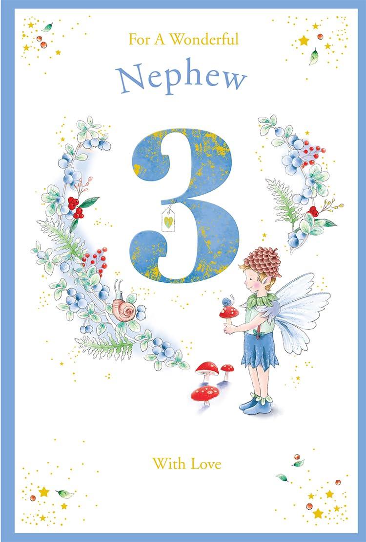 Nephew 3rd Birthday Card Age 3 Berry Pixie 9'' x 6'' Lovely Verse