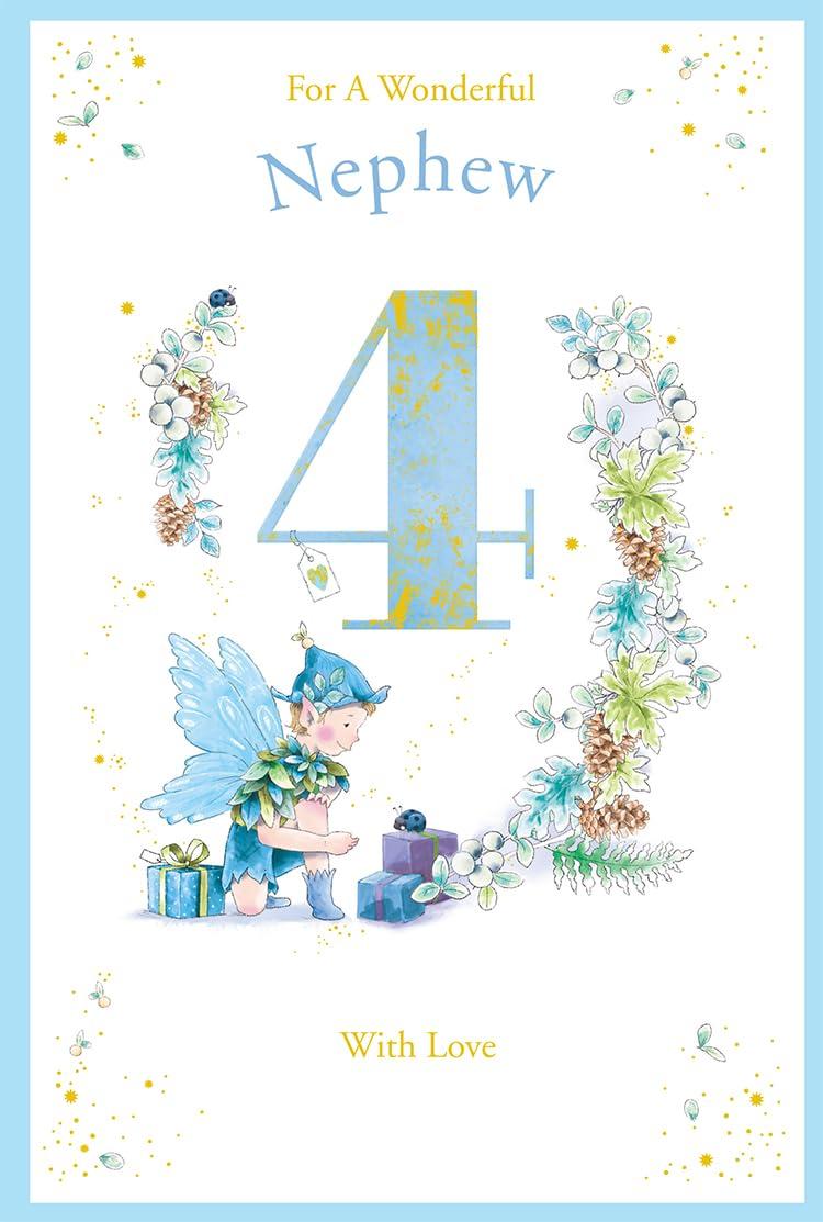 Nephew 4th Birthday Card Age 4 Pinecone Pixie 9'' x 6'' Lovely Verse
