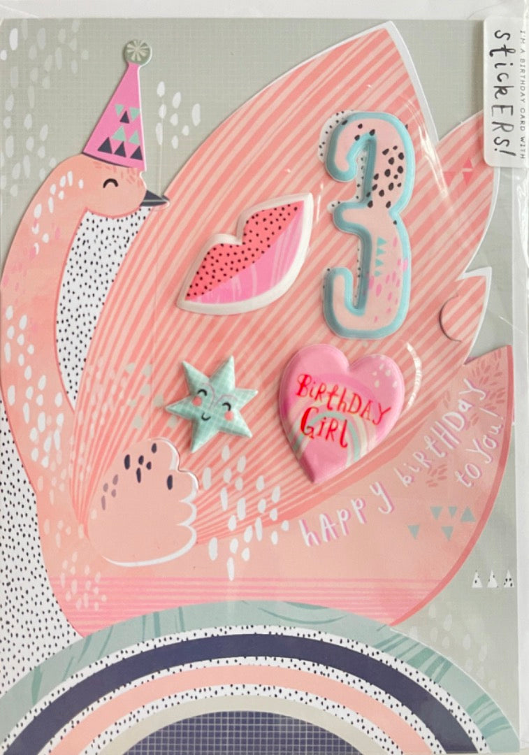 Pretty Pink Swan 3rd Birthday Girl Card with Stickers Heart star Kiss Hotchpotch