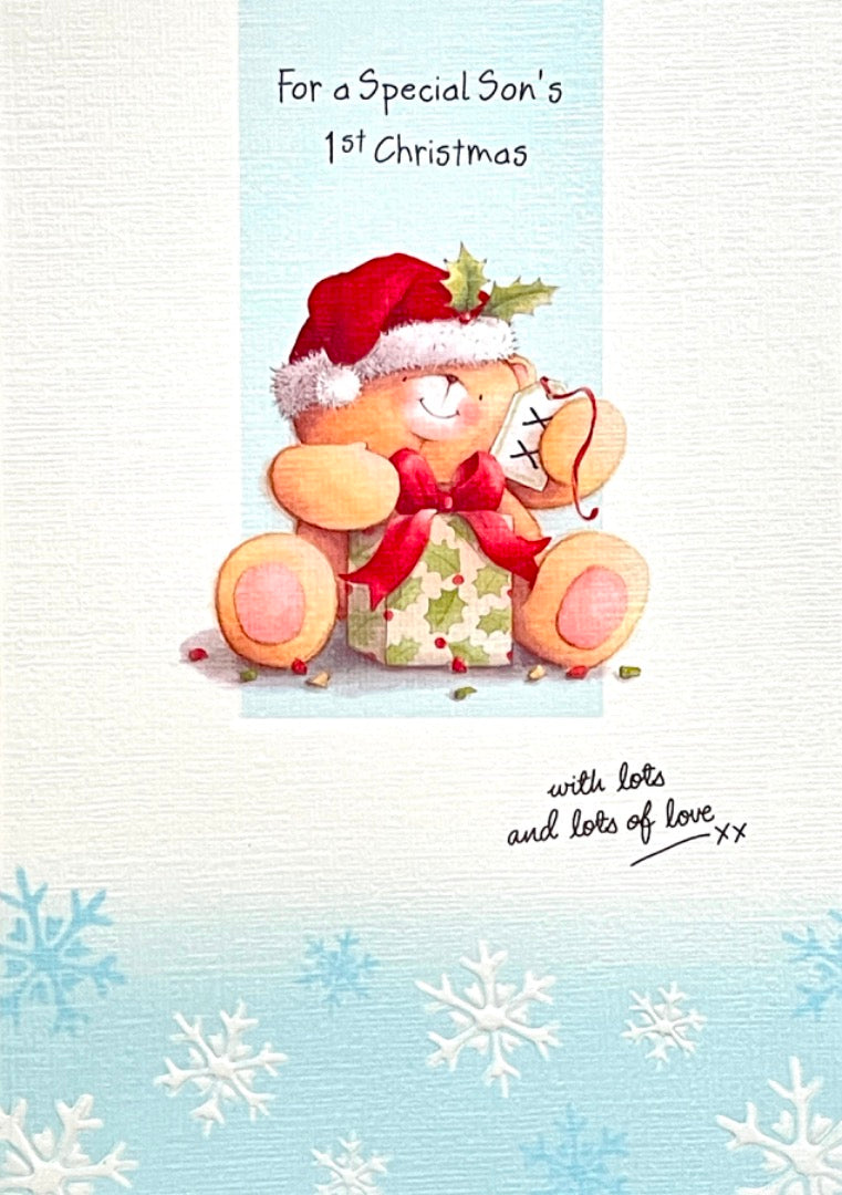 Special Son's 1st Christmas Card Forever Friends Cute Bear Opening Gift Hallmark