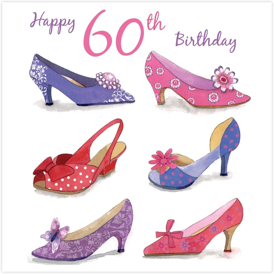 Happy 60th Birthday Card Shoes Shoes Shoes Flittered Glitter Art Milestone Age 60