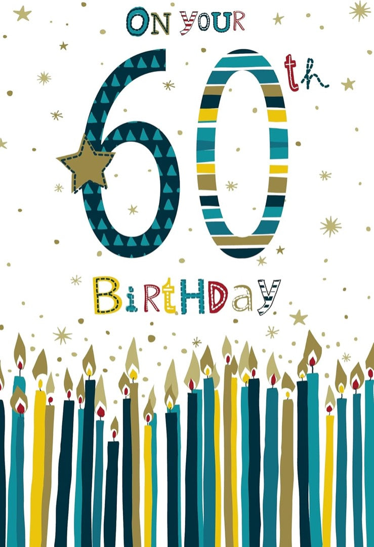 On Your 60th Birthday Greeting Card - Candles and Sparkle Foil Embossed Art