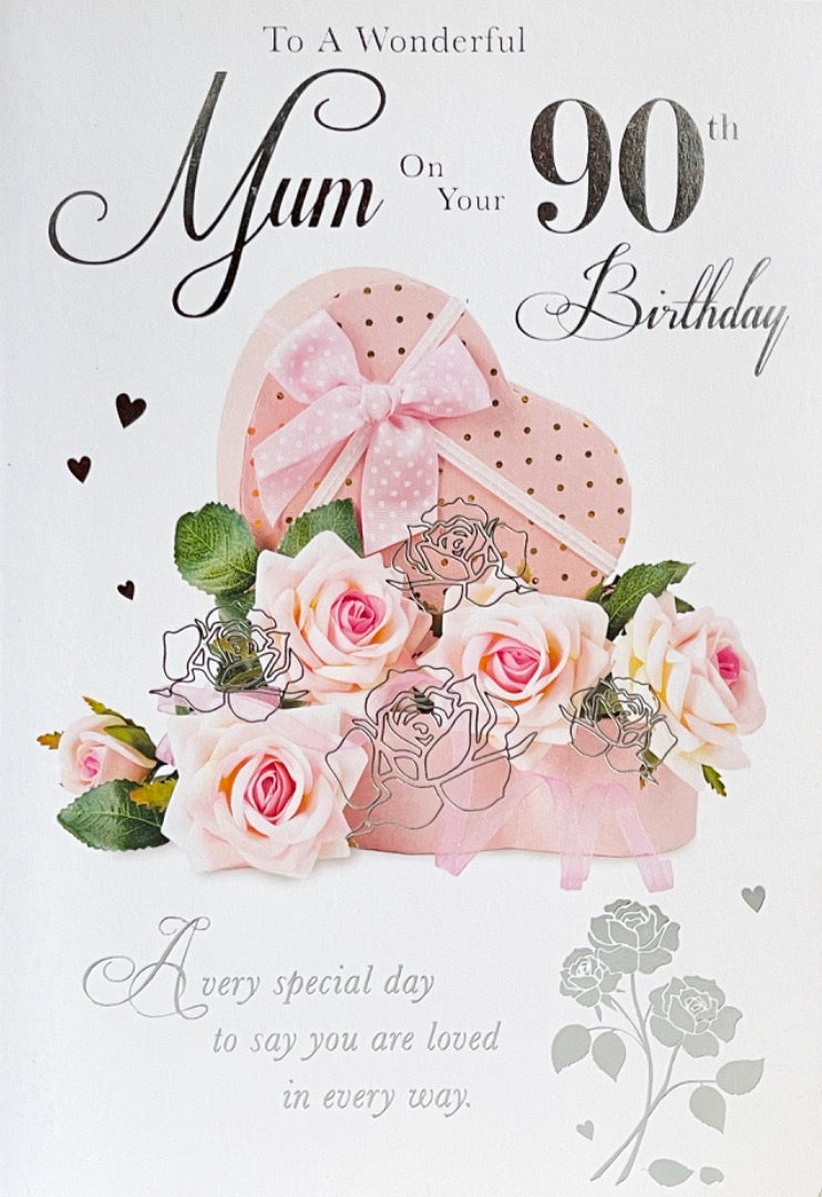 To A Wonderful Mum on Your 90th Birthday Card With Love Pink Roses