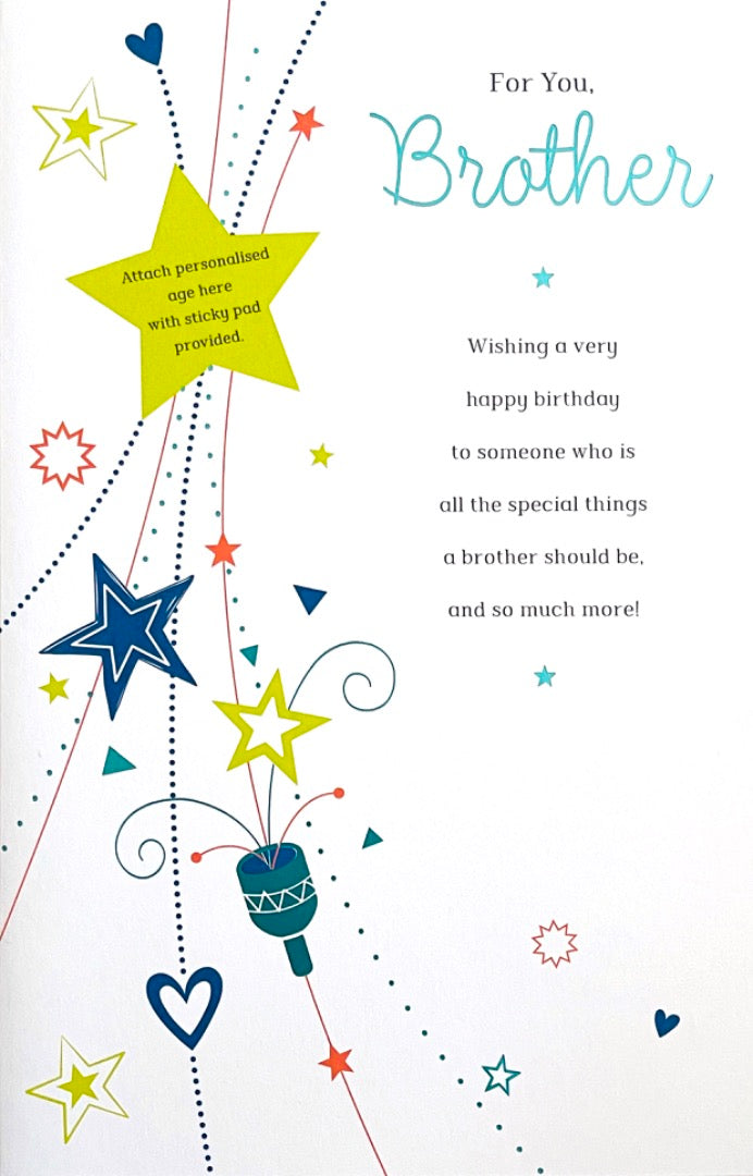 Special Brother Birthday Card Personalise For Age 40th 50th 60th 70th 80th 90th Party Popper Art
