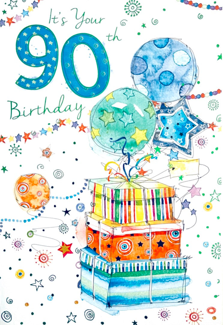 Happy 90th Birthday Card Party Gifts Balloons Watercolour Art Milestone Age 90