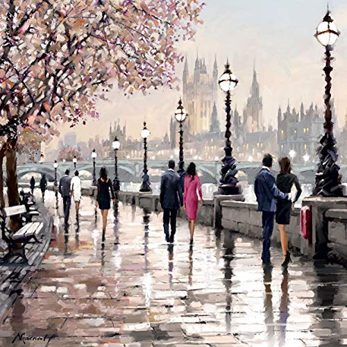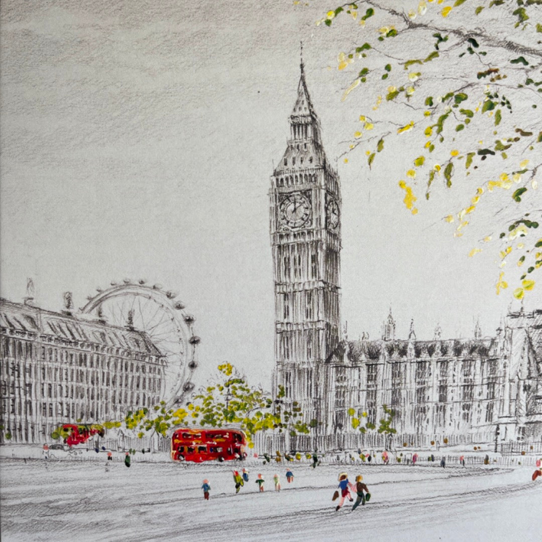 Walking Along London Embankment - Blank Artistic Greeting Card for Any Occasion