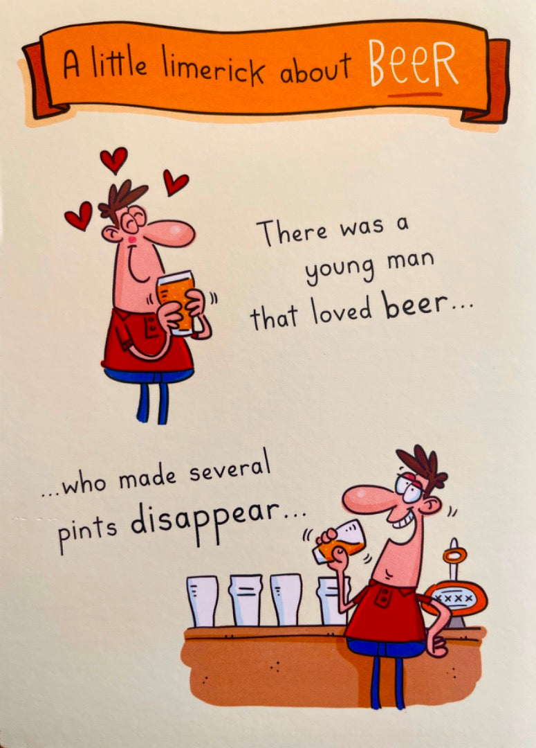 A Little Limerick About Beer Happy Birthday Funny Humour Card for Him - Pints Mumbled Stumbled Rear