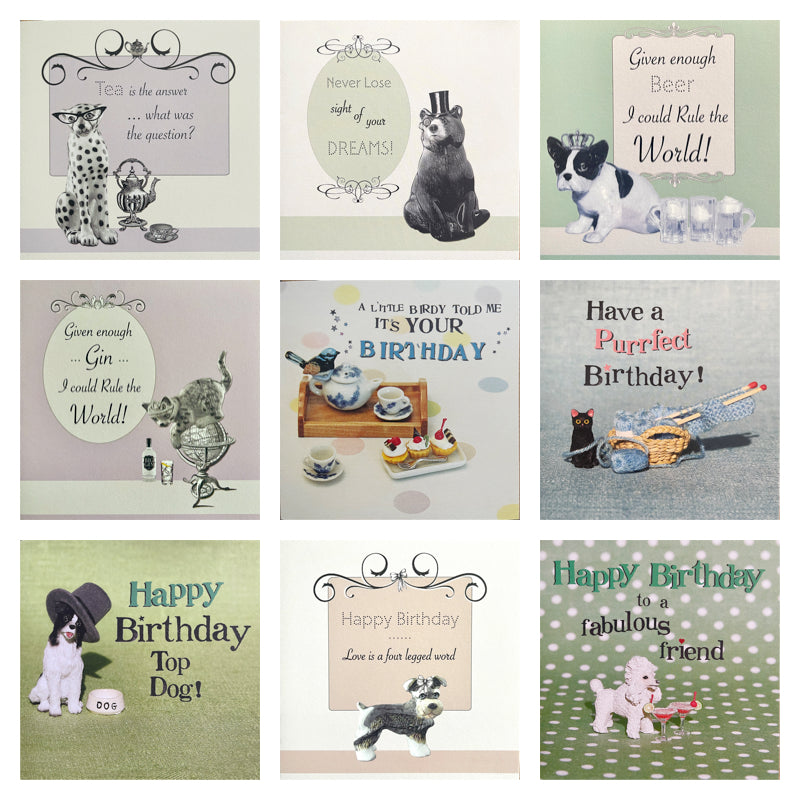 The Bees Knees Vintage Retro Art Blank/ Birthday Card Collection Drinks Friends Animals