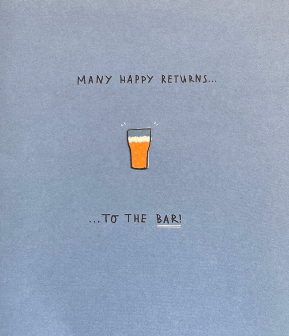 Beer - Many Happy Returns To The Bar Humour Blank /Birthday Greeting Card for Any Occasion UKG