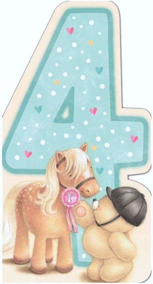 Fab 4th Birthday Fun Card Forever Friends Bear With Pony Giddy-up Horse Age 4 Girl