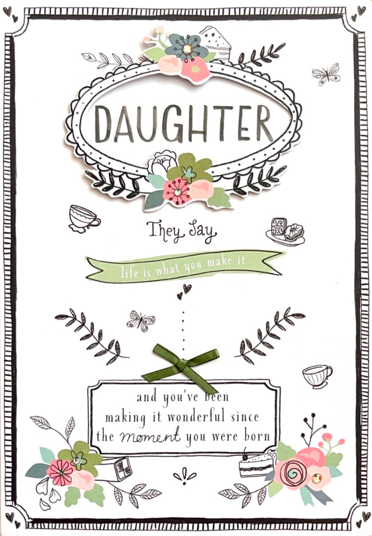 Daughter Happy Birthday Card Lovely Heartfelt Verse Tea & Cakes Art 3D Embellishment - Wordiful