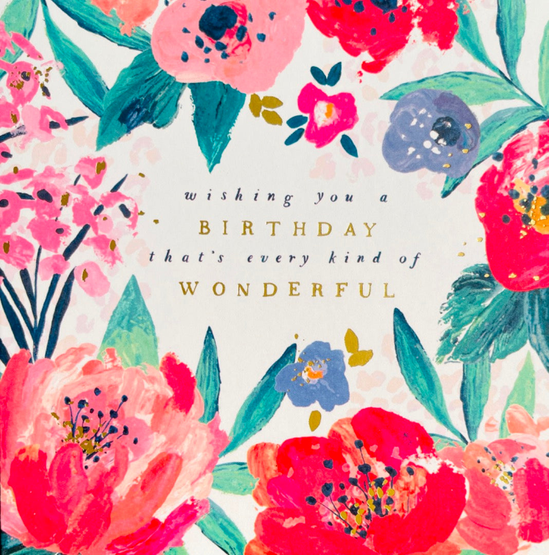 Wishing You a Birthday That's Wonderful Blank Card Gold Foil Flower Bloom Art - Hotchpotch