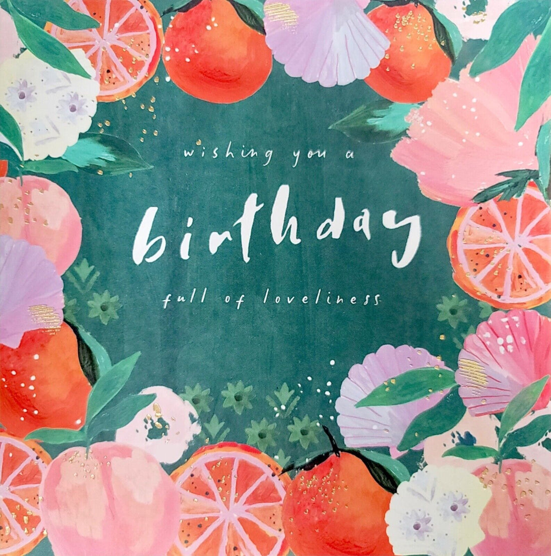 Happy Birthday Blank Card Gold Foil Leopard Flower Modern Contemporary Art - Hotchpotch