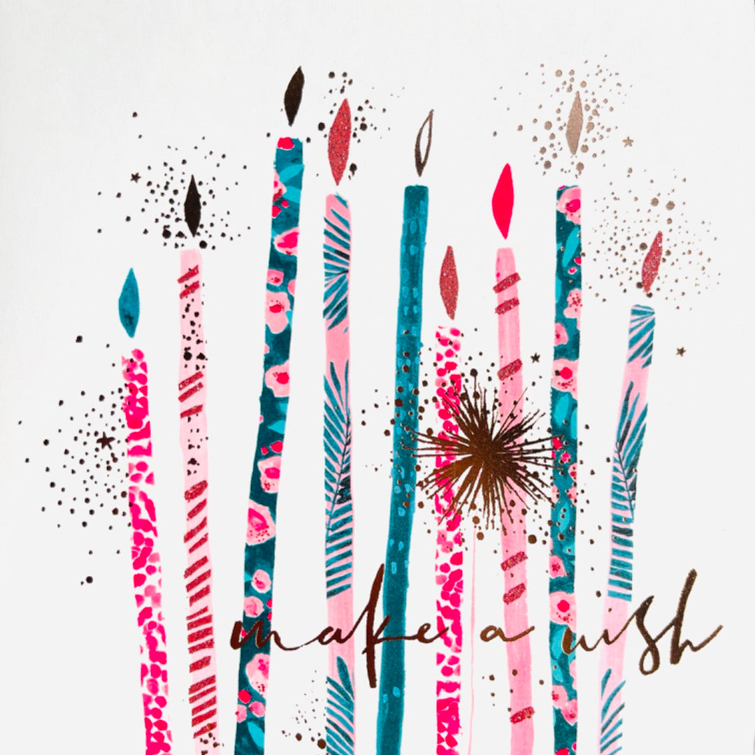 Make A Wish Sparkle Candles Blank Card for any Occasion Foil and Glitter Hotchpotch