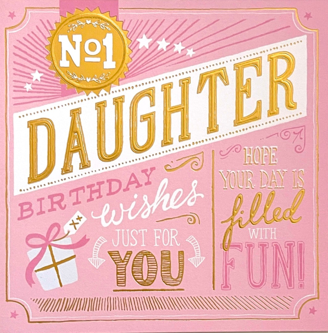 No.1 Daughter Happy Birthday Wishes Blank Card Modern Contemporary Gold Foil Art