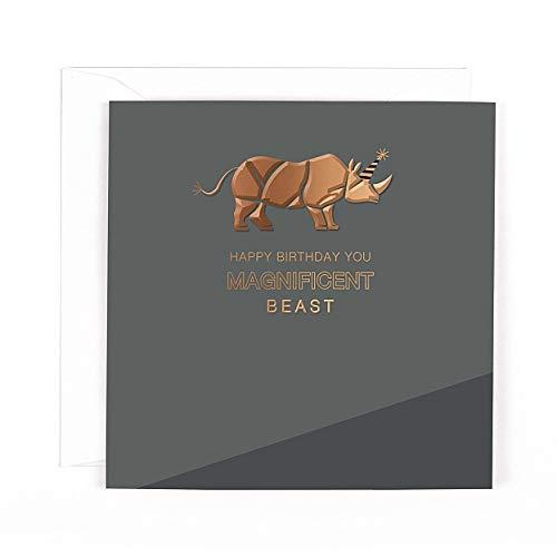 Happy Birthday You Magnificent Beast Blank Card - Rhino Party Hat - Hotch Potch
