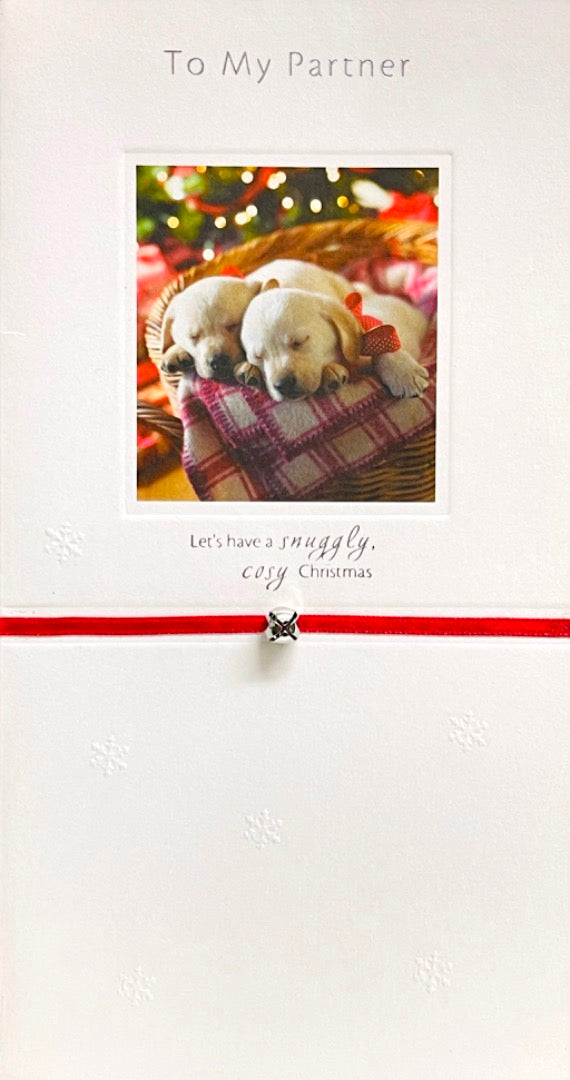 To My Partner Snuggly Cosy Christmas Card Cute Puppy Dogs Puppies Fast Asleep Hallmark