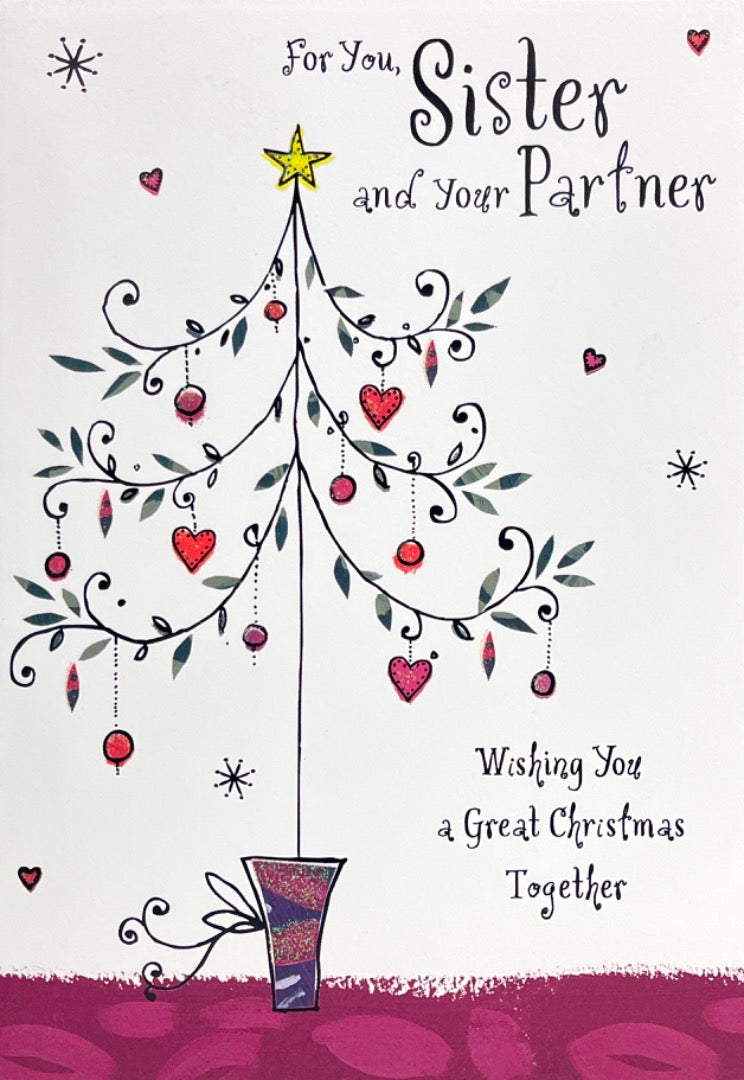 Special Sister and Your Partner Christmas Card Love to Both of You Tree Hallmark