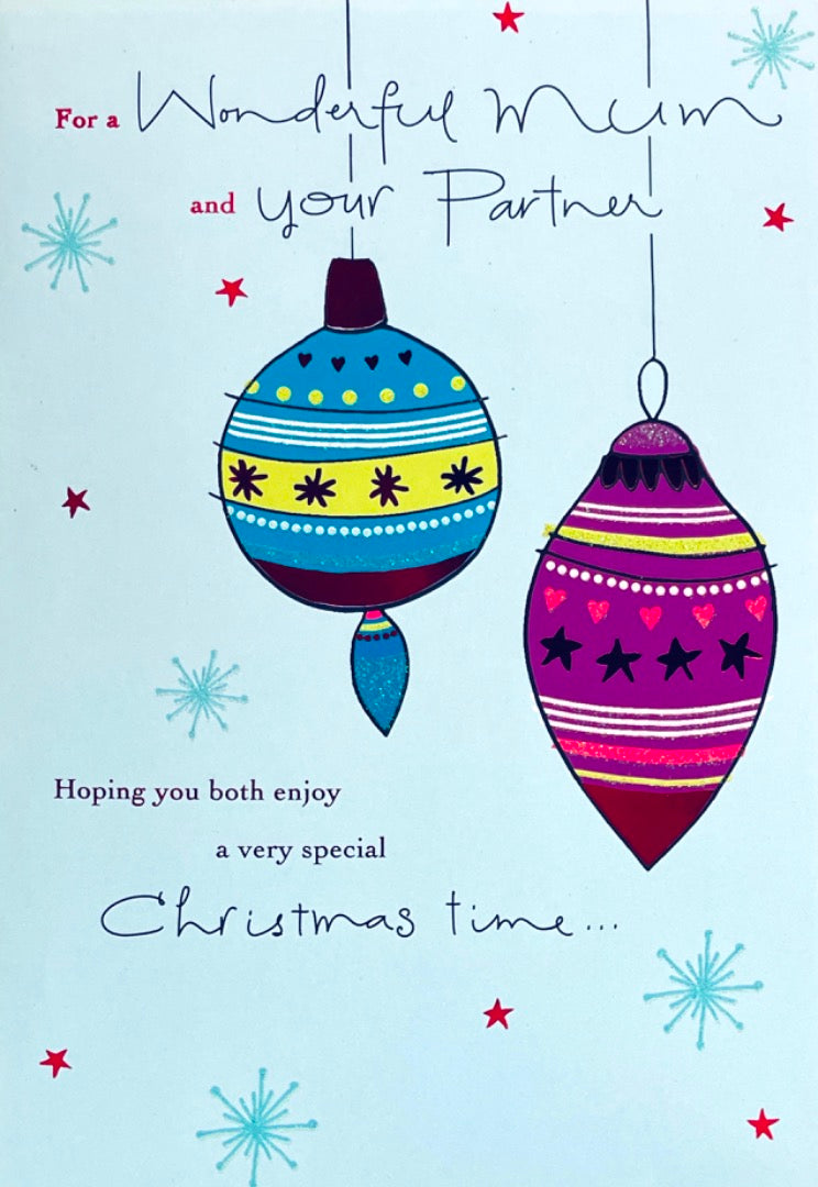Mum and Your Partner Christmas & New Year Card with Love Festive Baubles Hallmark