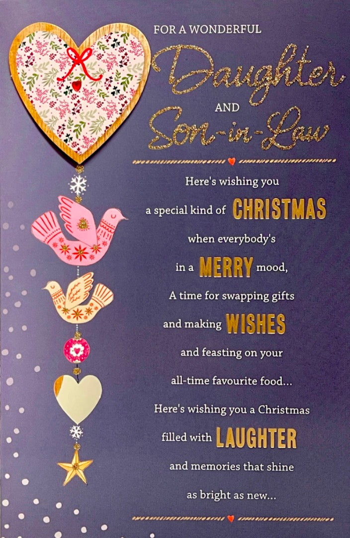 Wonderful Daughter and Son-in-Law Christmas Card Lovely Verse Glitter Hallmark