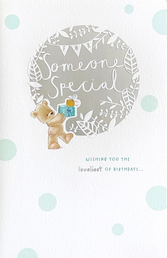 For Someone Special Loveliest Birthday Card - Adorable Teddy Bear with Gifts - Nutmeg