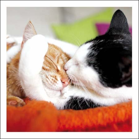 Bliss! - Cats Chilling Together Contemporary Photographic Blank Greeting Card