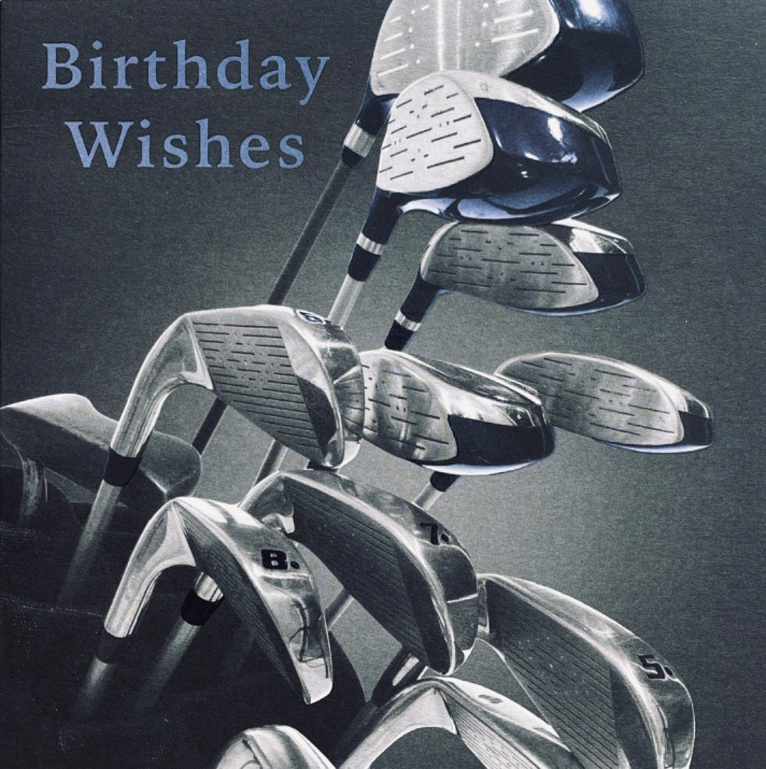 Birthday Wishes Golf Clubs Contemporary Birthday Card - in Aid of Cancer Research UK Charity