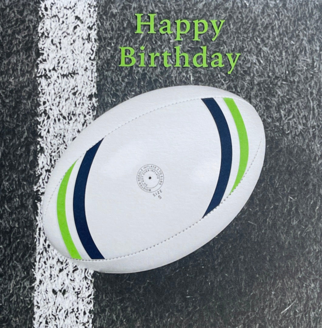 Happy Birthday Rugby Ball Contemporary Card - in Aid of Cancer Research UK Charity