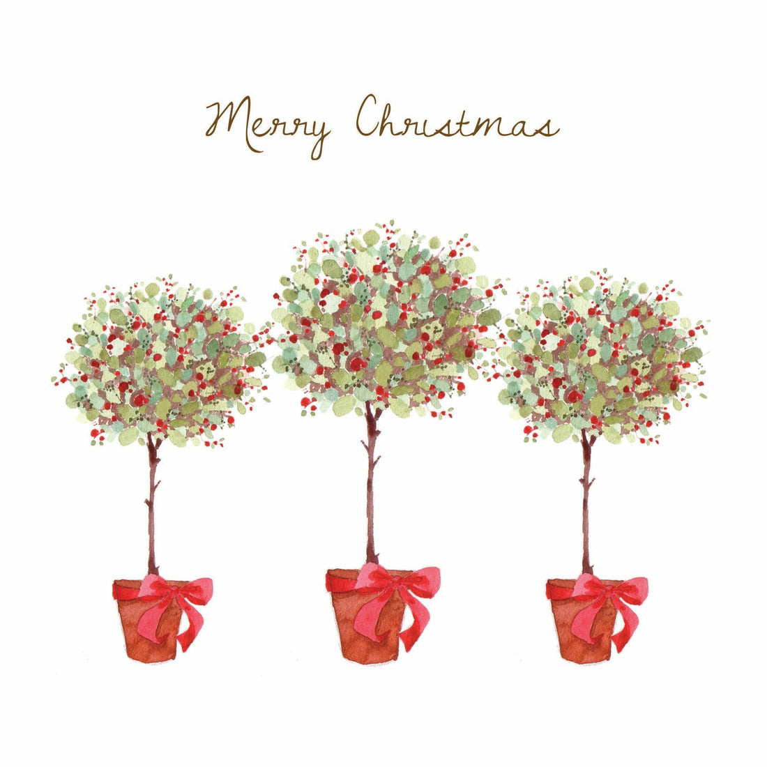 Three Potted Berry Trees Large Festive Christmas New Year Charity 10 Cards Pack