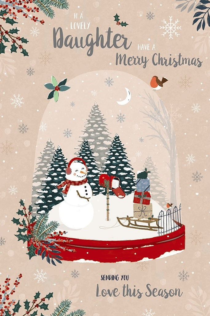 To a Lovely Daughter 'Festive Snow Globe' Silver Embossed Premium Christmas Card