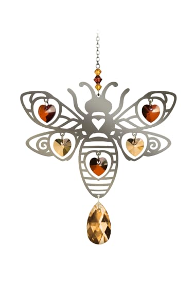 Bee Autumn Gold Pure Radiance Large Chrome Motif with Crystal Hearts Hanging Sun-Catcher Rainbow Maker Mobile