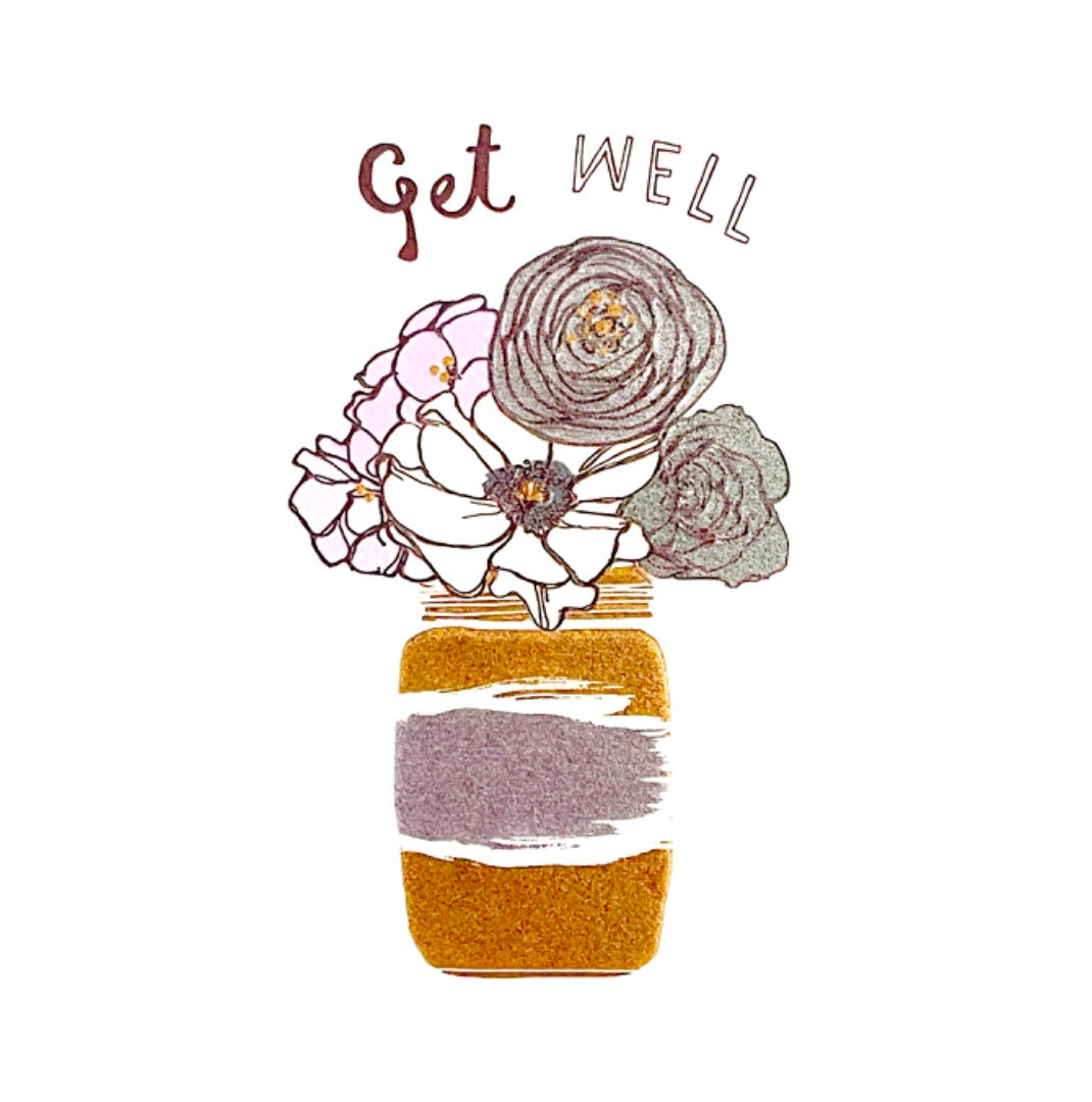Get Well Blank Greeting Card Modern Contemporary Foil Embossed Vase with Flowers