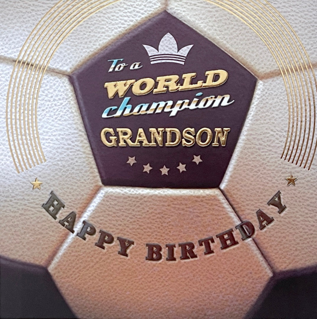 To A World Champion Grandson Happy Birthday Blank Contemporary Card Football