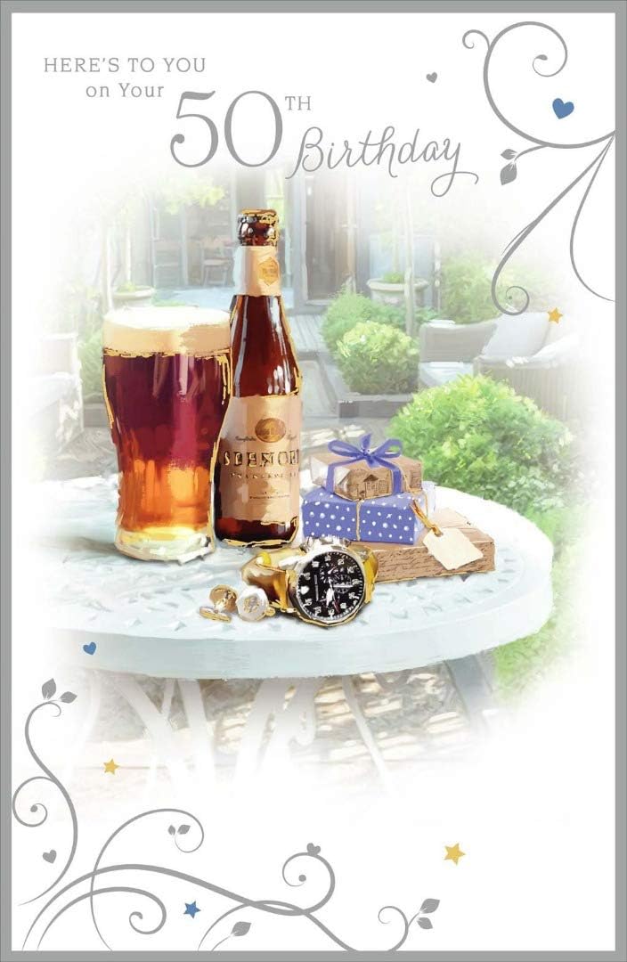 Here's to You On Your 50th Birthday Card Pub Drinks Beer and Gifts Art Milestone Age 50