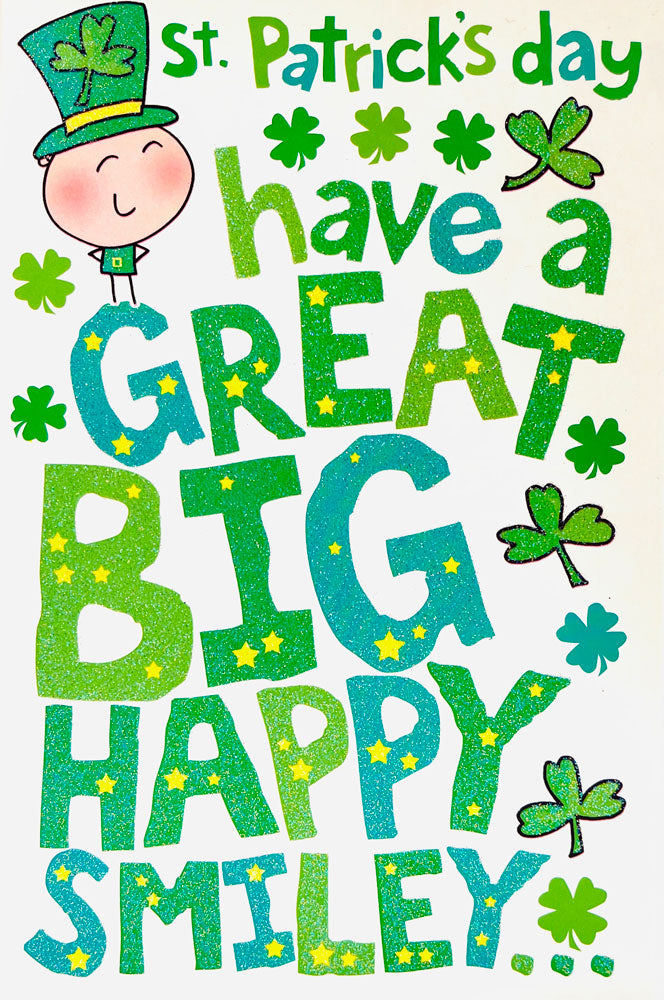 St. Patricks Day Have A Great Big Happy Smiley...Green Glitter Design Shamrock Day Festive Card from UK Greetings