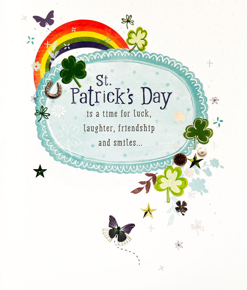 St Patrick's Day Time For Luck, Laughter, Friendship and Smiles... Shamrock Festive Card from UK Greetings