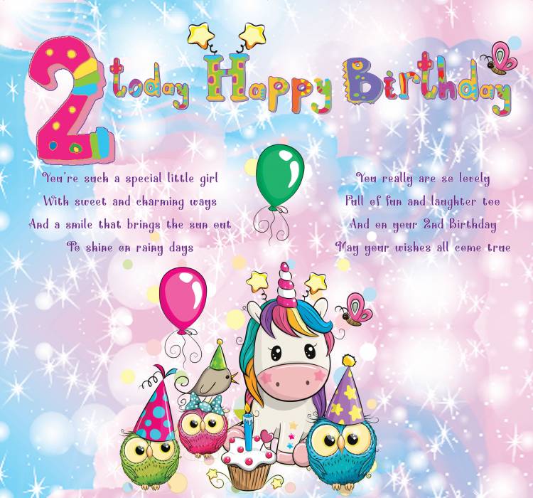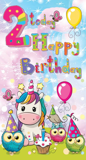 2 Today Happy Birthday - Special Little Girl Greeting Card with Lovely Verse - Unicorn, Owls, Butterflies, Balloons & Cupcake - Wee Nippers by Cardigan Cards