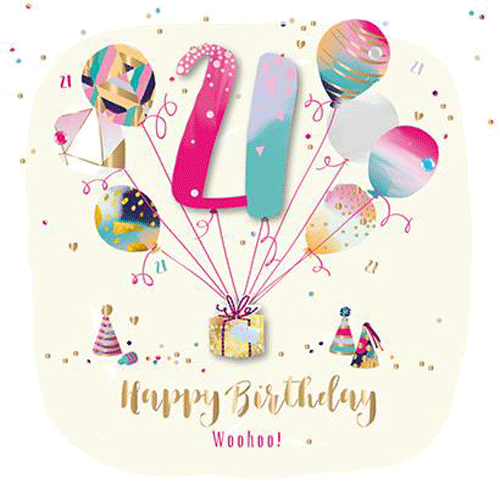 21st Happy Birthday Woohoo Luxury Hand Finished Greeting Card Party Presents Balloons & Confetti