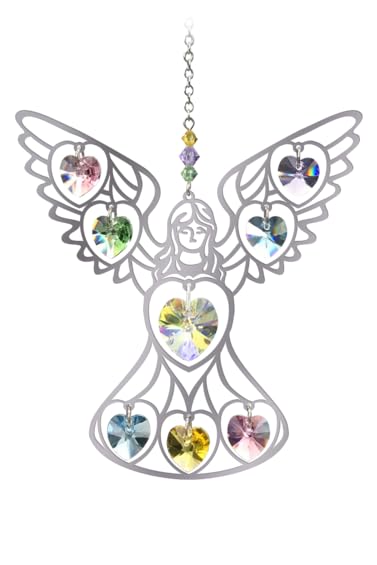 Angel Pastel Confetti Pure Radiance Large Crystal Hanging Sun-Catcher Mobile Rainbow Maker - Handmade with Chrome Motif, Coloured Crystal Hearts & Pendant