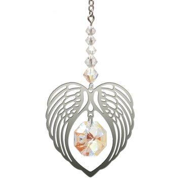 Angel Wing Heart - Aurora Borealis April Birthstone Colour Suncatcher Keepsake - Embellished with Crystals from Swarovski®