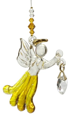 - Gorgeous Design: Hand Crafted Fantasy Crystal Guardian Angel made with Blown Glass. Embellished with a Beautiful Crystal which sparkles and shines in the sun, and enhanced with 24 carat gold paint.