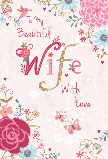 Beautiful Wife with Love Birthday Greeting Card (ML449) - Female Butterflies Bird - Foil Finish - from Cherry Orchard