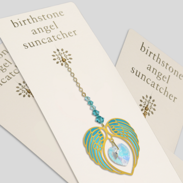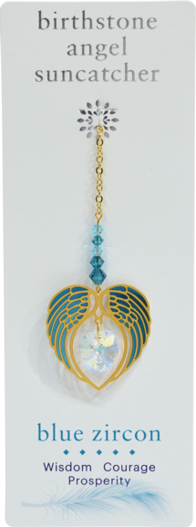CRYSTAL SUNCATCHER: A gorgeous crystal angel wing heart with complimentary December Blue Zircon Birthstone sentiment enclosed.