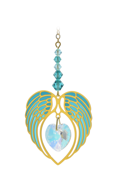 BLUE ZIRCON December Birthstone Gold Angel Wing Heart Sun-catcher Hanging Crystal Gift