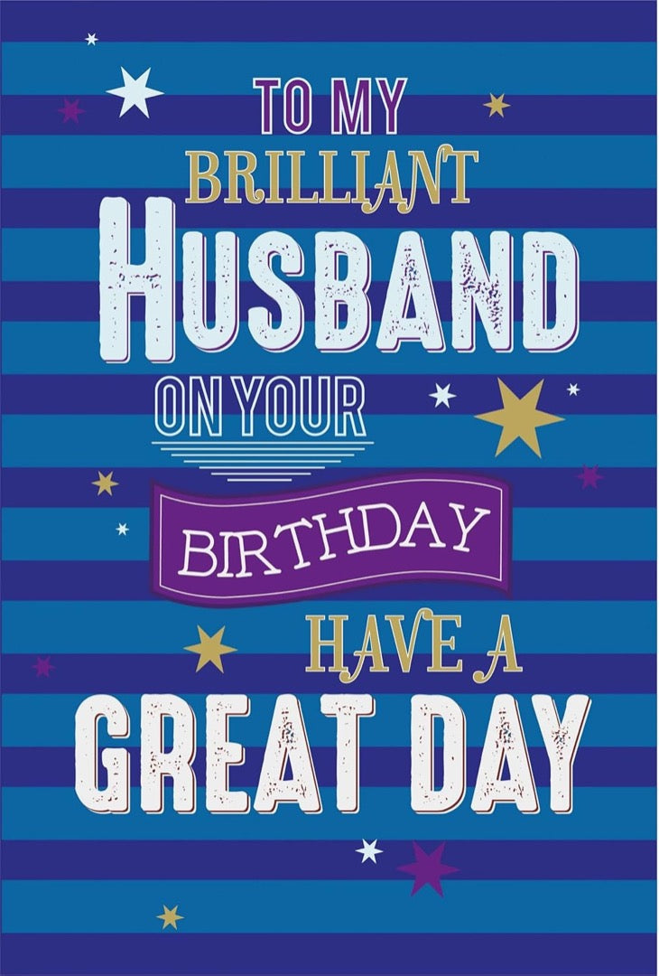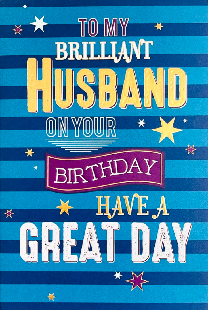 Brilliant Husband With Love On Your Birthday Card - Bold Stripes Gold Embossed Contemporary