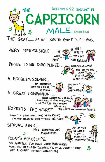 Capricorn Male The Goat Dec 22 -Jan 19 Astrology Zodiac Star Sign Blank Card Naughty Rude Humour