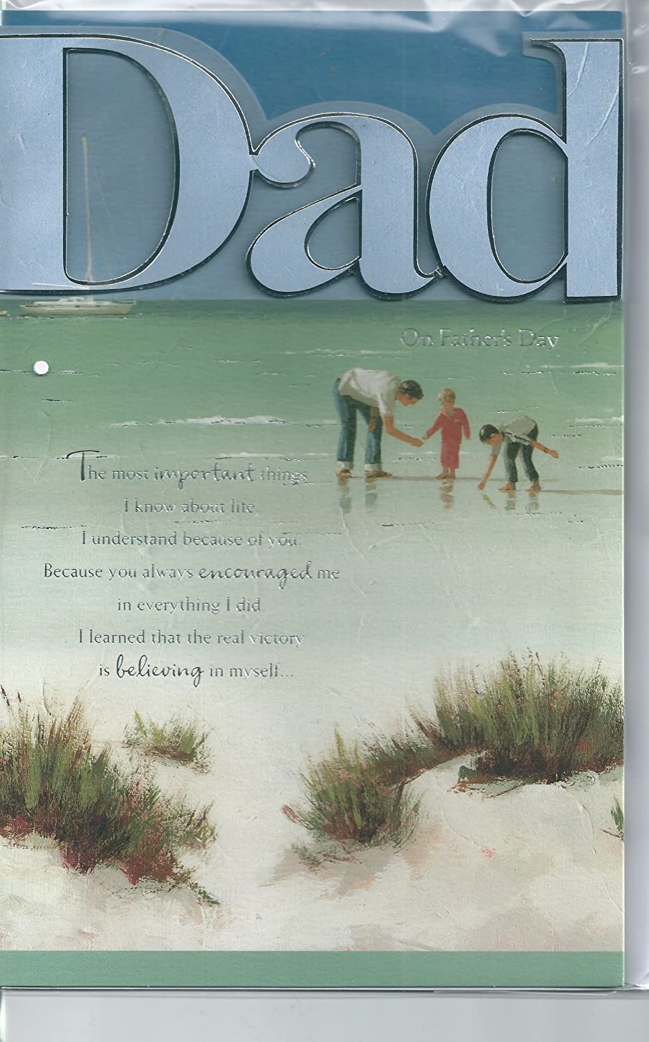 Dad on Father's Day Most Important Things about Life Beautiful Beach Family Silver Foil Finish Traditional UK Greetings Card