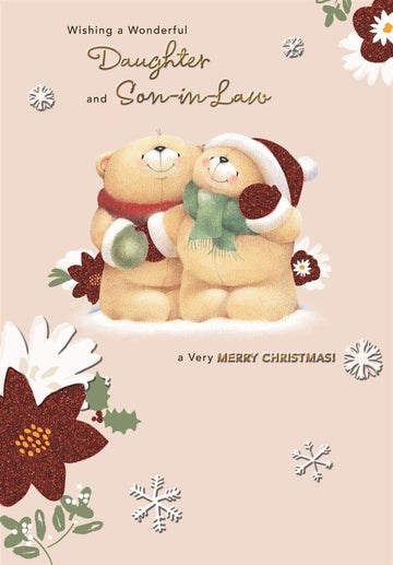 Daughter & Son In Law Christmas Card Forever Friends Bear Cute Couple Red Glitter Hallmark