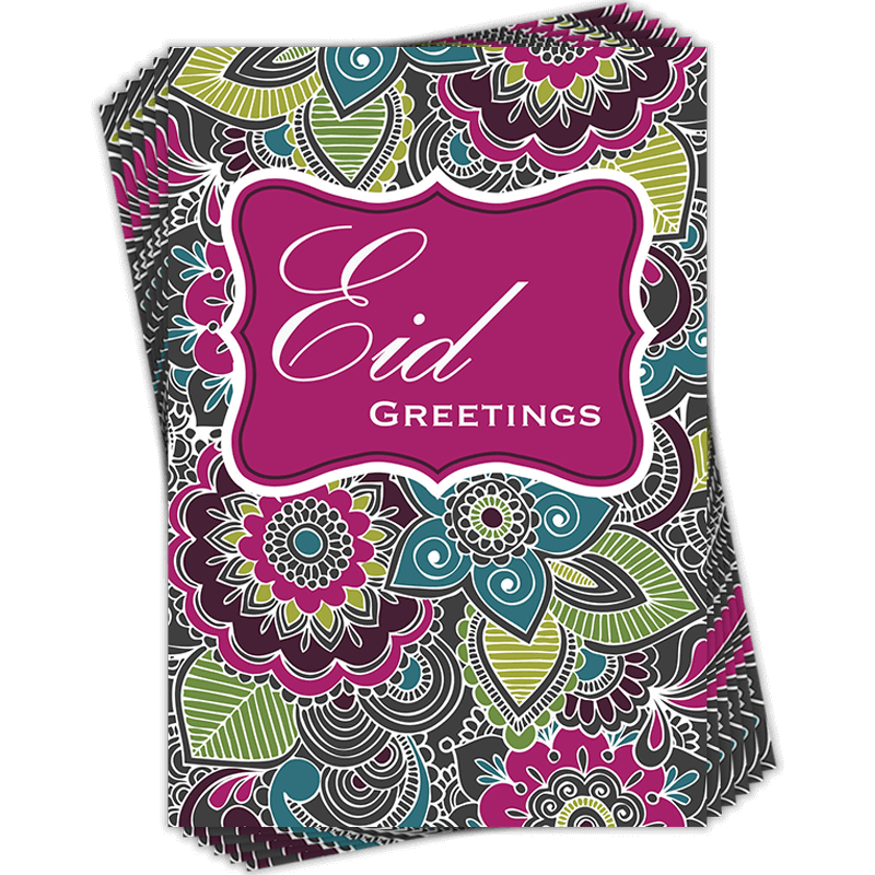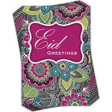 Eid Greetings Henna Flowers Greeting Cards by Davora in Multi Pack of 6